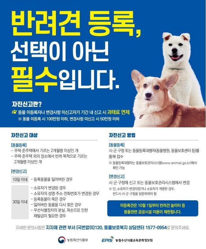 - 국가동물보호정보시스템 또는 정부24에서 온라인 신고.